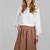 LA MODELLA E' ALTA 177 CM E INDOSSA LA TAGLIA M NELLA VARIANTE PURE WHITE.