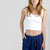 LA MODELLA E' ALTA 177 CM E INDOSSA LA TAGLIA 42 NELLA VARIANTE BLUEPRINT.