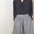 Pantalone realizzato in lana, con arriccio sul davanti ed elastico in vita dietro.