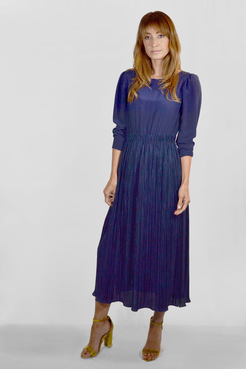 Gonna midi in tessuto plissettato in poliestere, foderata in seta.